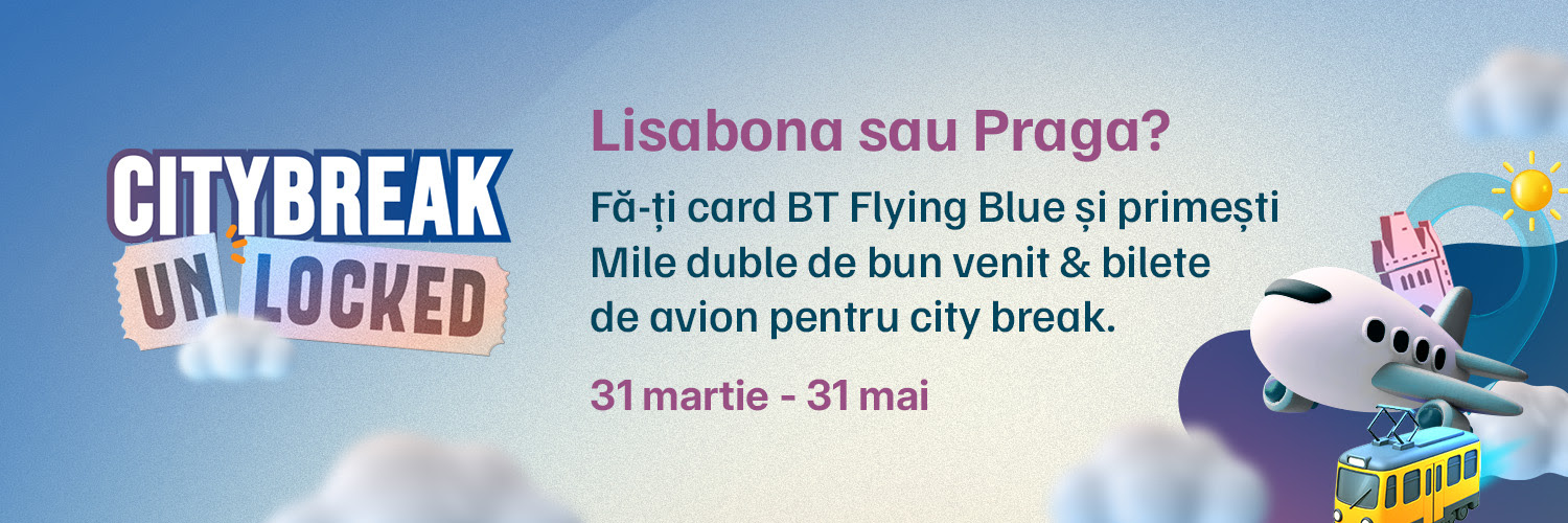 Fiecare cumpărătură te poate duce mai aproape de următoarea ta aventură. Cu cardurile BT Flying Blue, cheltuielile de zi cu zi devin biletul tău către experiențe memorabile. Campania actuală te invită să intri pe modul travel ready, oferindu-ți beneficii dublate și șansa de a explora destinații europene de vis.